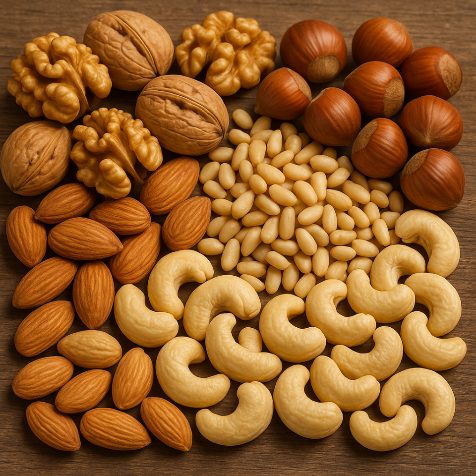 호두, 아몬드, 캐슈넛, 피스타치오 같은 견과류에는 불포화지방산과 비타민 E가 풍부합니다. 특히 호두에는 오메가-3 지방산이 함유되어 있어 뇌신경세포의 활동을 돕고 기억력 향상에 기여합니다.